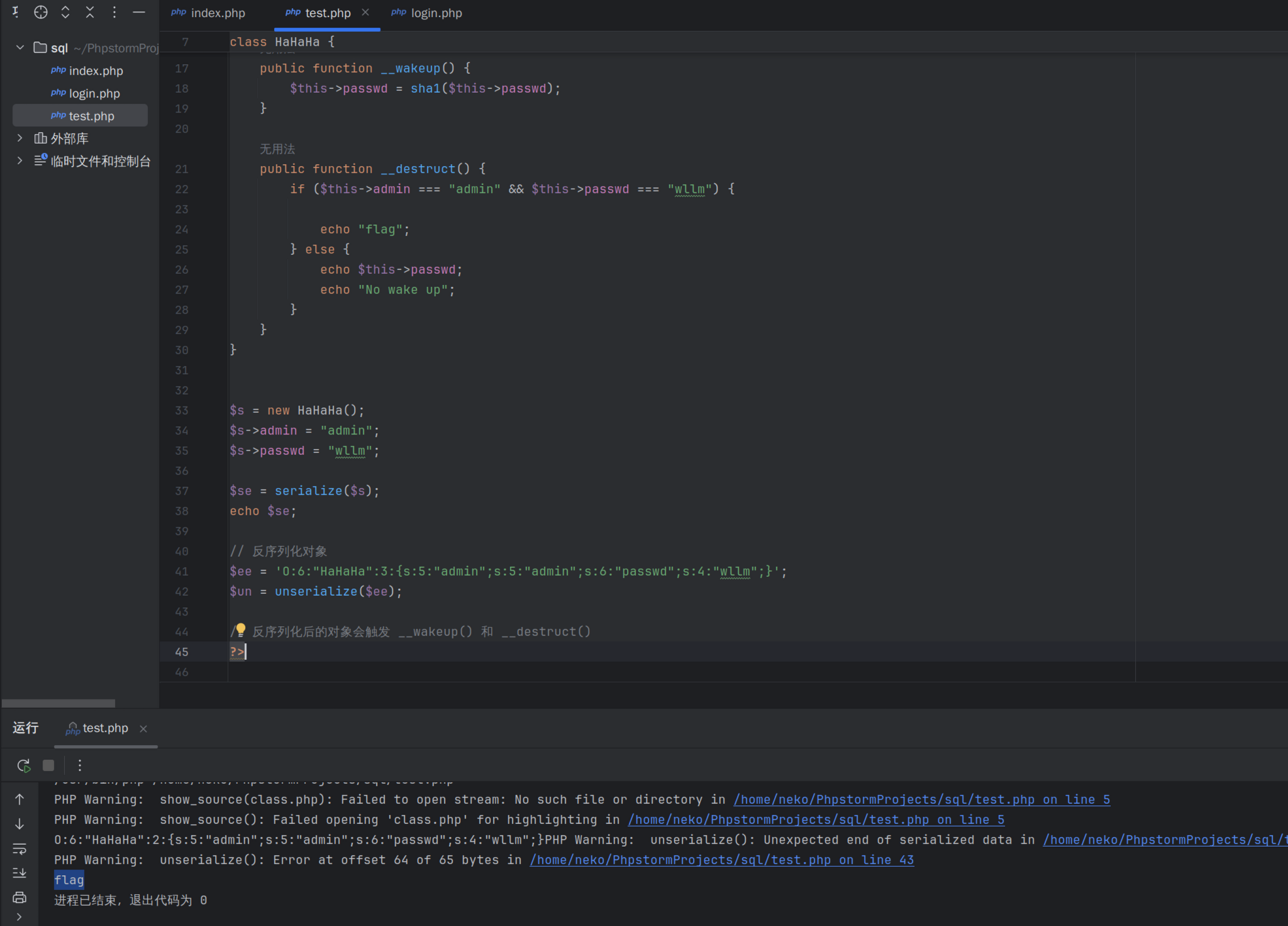 经过实验 ($this->a !== $this->b)这个弱比较可以通过字符数字的形式绕过