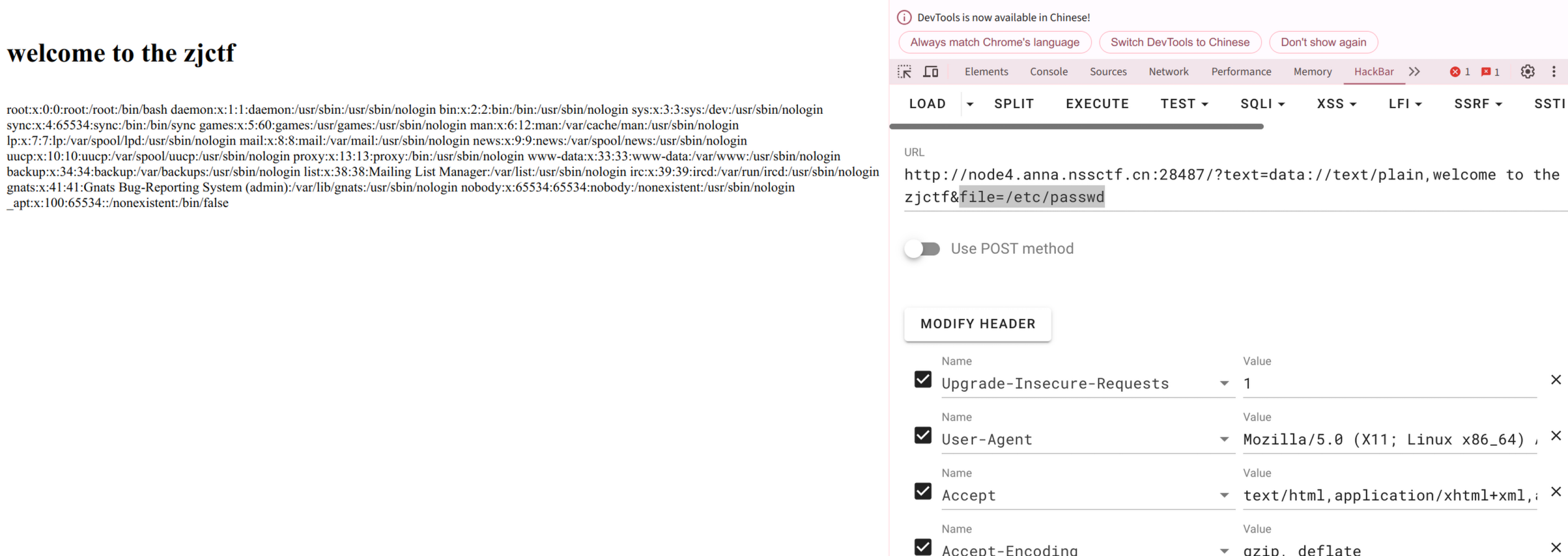 他需要text传入的内容等于welcome to the zjctf,可以利用伪协议完成