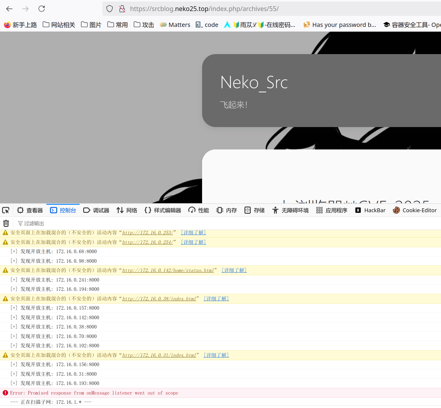 这是一个简单示例,关键在于使用mode: 'no-cors’ 来实现绕过同源策略,但他还有一个问题就是,其无法在https的网站上使用会报告Mixed Content: The page at '<URL>' was loaded over HTTPS, but requested an insecure resource '<URL>'. This request has been blocked; the content must be served over HTTPS. 的错误,如果暂时关闭安全链接,则效果如下