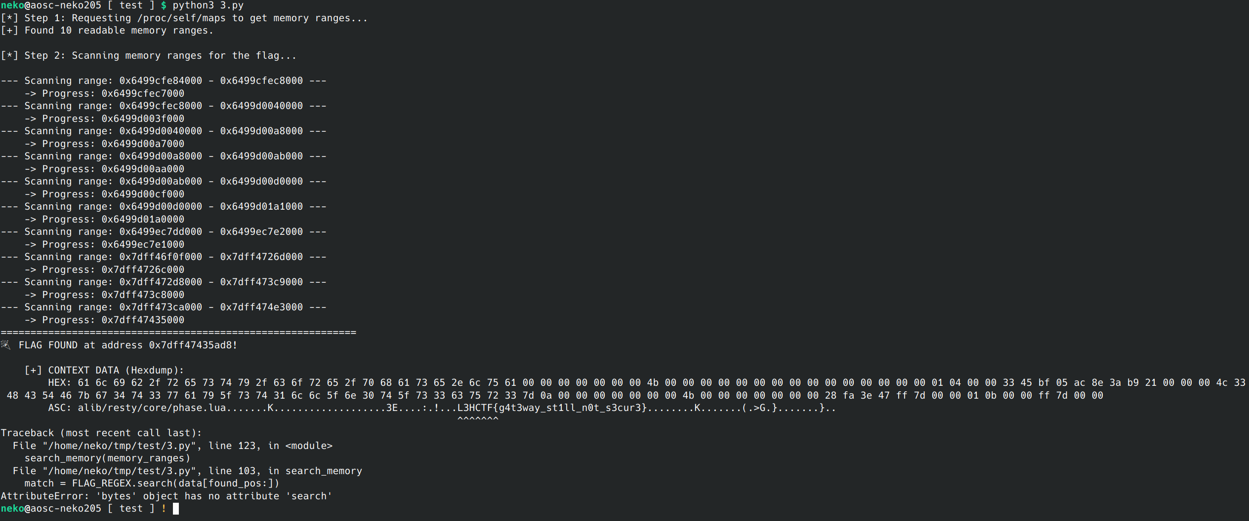 这里就需要通过读取/proc/self/maps遍历找flag,直接让ai搓个脚本跑