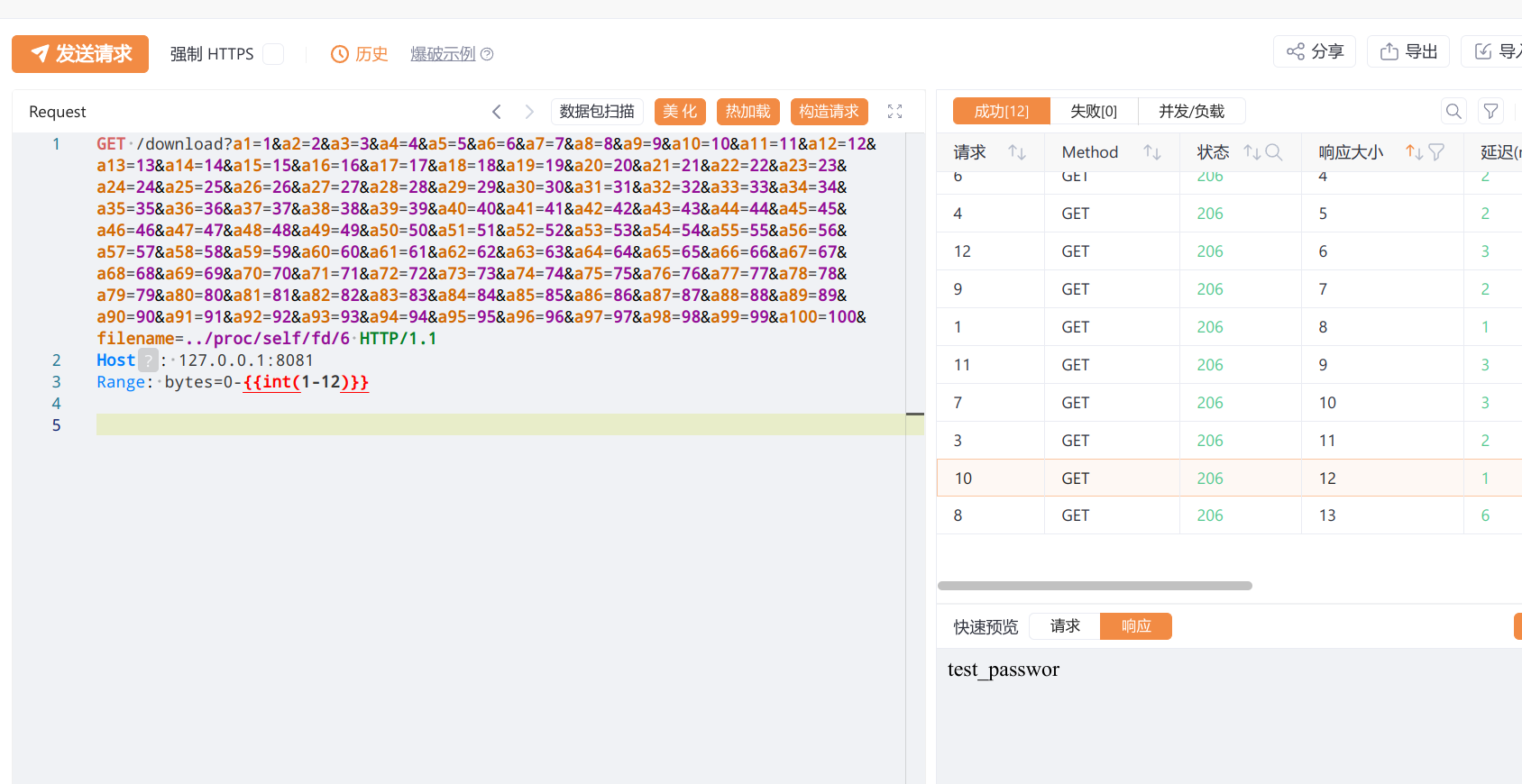 不过直接读取会导致被waf,可以使用Range: bytes=0-0标签来绕过 逐字节读取
